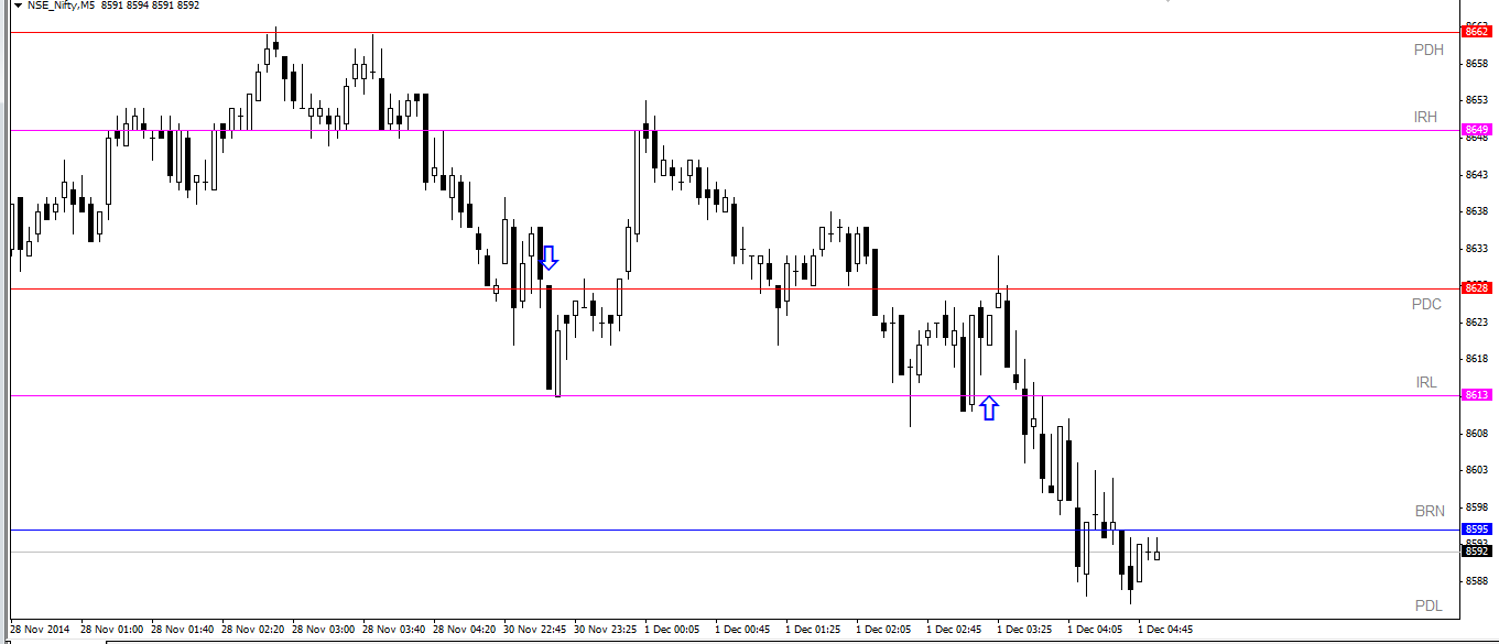 1) Short on BOF type of PDC. SL hit. Left the upmove. Price again tested IRL but wasn't confident as earlier BOF didn't go even till PDH.